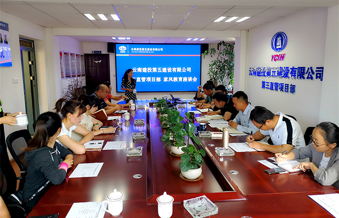 根據(jù)集團(tuán)、公司黨委關(guān)于開展警示教育和家風(fēng)教育“三個(gè)一”系列活動(dòng)的相關(guān)要求,為進(jìn)一步提高廣大干部職工及家庭成員的拒腐防變意識(shí),充分發(fā)揮家庭在推動(dòng)黨風(fēng)廉政建設(shè)中的特殊作用,構(gòu)筑家庭反腐倡廉的牢固防線,8月26日,第三直管項(xiàng)目部召開家風(fēng)教育座談會(huì),直管部班子成員、科室負(fù)責(zé)人、在昆項(xiàng)目經(jīng)理及5名干部職工家屬參加座談。 在此期間,大家共同觀看了企業(yè)宣傳片...