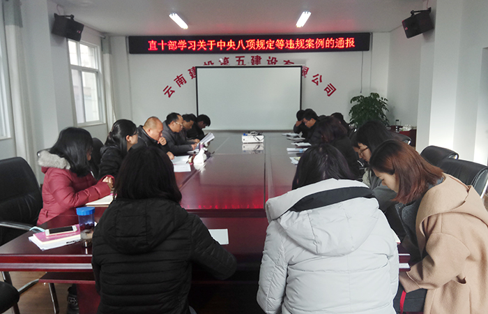 1月15日,第十直管項目部組織在昆領(lǐng)導(dǎo)班子成員、二線管理人員共計17人開展春節(jié)前維穩(wěn)工作會,重點對《省紀(jì)委關(guān)于5起違規(guī)發(fā)放津貼或福利典型案例的通報》和《省紀(jì)委駐省國資委紀(jì)檢組關(guān)于省屬企業(yè)5起違反中央八項規(guī)定精神問題的情況通報》、《中央云南省紀(jì)委關(guān)于組織全省開展貫徹落實中央百項規(guī)定精神糾正“四風(fēng)”調(diào)研抽查的情況通報》等文件進(jìn)行宣讀學(xué)習(xí)。 直管部黨支部書記鄔金華表示,學(xué)...
