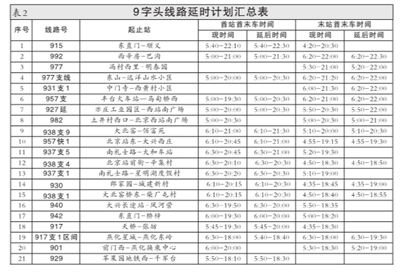 根據(jù)廣大市民的建議和要求,公交集團(tuán)擬于11月15日起延長(zhǎng)915、992、977、977支線等21條9字頭線路的營(yíng)業(yè)時(shí)間,每條線路平均延時(shí)1小時(shí)左右。(詳見表2)