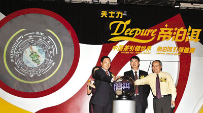 天士力集團(tuán)董事長(zhǎng)閆希軍說,天士力將14年打造現(xiàn)代中藥的技術(shù)、文化、思想等,融入到傳統(tǒng)的普洱茶產(chǎn)業(yè)中,研究生產(chǎn)的“帝泊洱即溶普洱茶珍”,在普洱茶功效研究與開發(fā)領(lǐng)域取得了重大突破。他提出了大膽的目標(biāo):要與世界知名品牌“立頓”相競(jìng)爭(zhēng),讓帝泊洱打造“科學(xué)普洱”成為茶理念創(chuàng)新的領(lǐng)跑者、茶產(chǎn)業(yè)技術(shù)的領(lǐng)跑者、茶產(chǎn)品標(biāo)準(zhǔn)的領(lǐng)跑者、茶功效創(chuàng)新的領(lǐng)跑者,讓全球人都來享受中國(guó)茶源、茶文化及茶的先進(jìn)技術(shù)。同時(shí)他表示,新品選擇在國(guó)際化程度很高的香港上市,也就正式邁出了走向海內(nèi)外市場(chǎng)腳步。