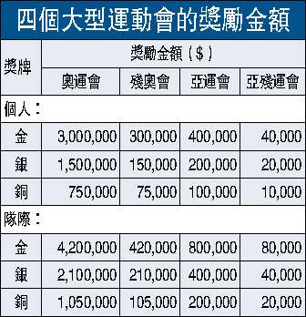四個(gè)大型運(yùn)動(dòng)會(huì)的獎(jiǎng)勵(lì)金額。圖片來源:文匯報(bào)