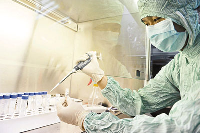 內(nèi)地藥廠正就新流感疫苗進(jìn)行臨床研究,預(yù)期首批疫苗可望下月推出市場。圖為研究人員取用移液槍將毒株進(jìn)行稀釋。(圖片來源:文匯報(bào))