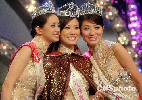 全港矚目的選美盛事二00九香港小姐競(jìng)選決賽二十二日晚圓滿(mǎn)結(jié)束。芳齡二十三歲的劉倩婷(中)勝出,榮登港姐冠軍寶座。亞軍是李姿敏(右),熊穎詩(shī)奪得季軍(左)。 中新社發(fā) 鄧慶樂(lè) 攝