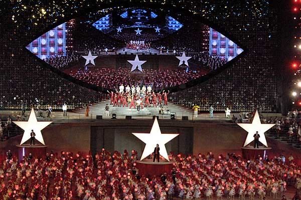 8月9日,演員在濱海灣浮動舞臺上表演。新華社記者張永興攝