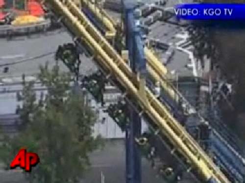 據(jù)悉,美國(guó)曾發(fā)生多起過山車事故。2009年7月25日,紐約州布朗克斯地區(qū)一家游樂園的迷你過山車發(fā)生脫軌故障,造成7名兒童受輕傷。2007年6月,阿肯色州一家游樂園發(fā)生過山車事故,12名游客在距地面50米的過山車軌道最高點(diǎn)倒掛半個(gè)小時(shí)。2006年7月9日,辛辛那提市派拉蒙游樂場(chǎng)的過山車在運(yùn)行途中突然停止造成27人受傷。2005年7月29日,加州迪斯尼樂園的兩輛過山車相撞造成60人受傷。1999年8月在舊金山美國(guó)最大的六面旗主題公園內(nèi),一輛過山車在即將翻滾時(shí)突然停止,28名乘客在近40攝氏度的高溫里被吊了4個(gè)小時(shí)。