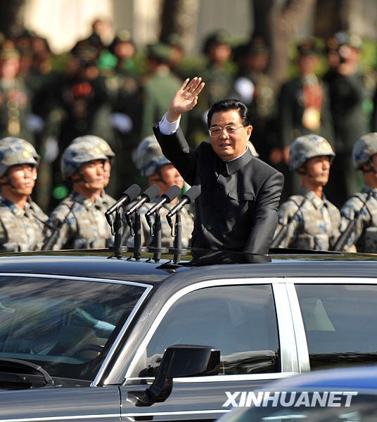 中共中央總書記、國家主席、中央軍委主席胡錦濤檢閱受閱部隊。新華社記者 陳建力 攝