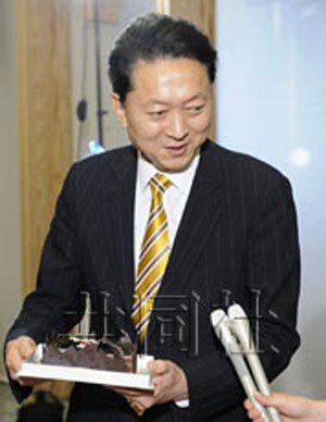 鳩山收到這份禮物后笑容滿面。不過,回顧過去一年,他苦笑說,雖然自己盡心盡力,“但得不到民眾理解時,只能獨自承受痛苦”。