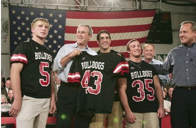 不過,當(dāng)時(shí)的喬治·布什已經(jīng)在父親的公司里擁有了股份,并且是學(xué)校最闊的男生。為了表示自己對于棒球隊(duì)的熱愛和支持,布什穿上了菲利普斯學(xué)院棒球隊(duì)的彩色隊(duì)服,在邊線為本校球隊(duì)大聲搖旗吶喊。而且,為了表示藐視對方,布什不惜戴上假發(fā)和假乳房,借此貶低對方球隊(duì)。
