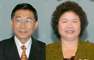 當(dāng)日高雄市長(zhǎng)選舉兩位候選人:國(guó)民黨候選人黃俊英(左),民進(jìn)黨候選人陳菊(右)
