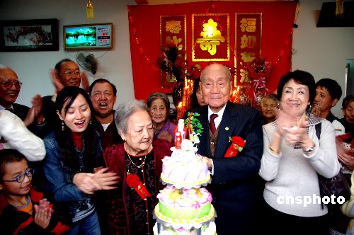 10時30分許,拜壽開始,潘祖培與妻子端坐在廳堂,接受親友們叩拜祝福。叩拜者中,年齡最大的是潘老當年教過的福州英華中學學生,已經(jīng)86歲;而最小的族親才數(shù)月大!翱吹剿麄,倍感親切!迸俗媾嗾f。