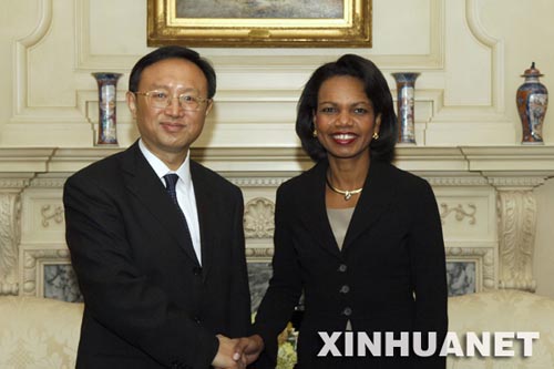 2007年11月26日 美國國務(wù)卿賴斯會見中國外交部長楊潔篪 11月26日,美國國務(wù)卿賴斯在華盛頓會見中國外交部長楊潔篪。 新華社記者 張巖攝