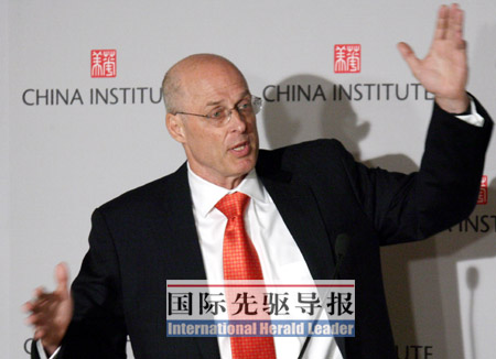 保爾森非常認(rèn)同中國(guó)經(jīng)濟(jì)發(fā)展對(duì)全球經(jīng)濟(jì)的貢獻(xiàn)!坝腥藫(dān)心中國(guó)的經(jīng)濟(jì)增長(zhǎng)將以某種方式給世界其他國(guó)家?guī)?lái)?yè)p害,實(shí)際上這種擔(dān)心是沒(méi)有必要的!北柹赋,“中國(guó)的經(jīng)濟(jì)增長(zhǎng)正在使世界其他國(guó)家受益,我們希望中國(guó)的經(jīng)濟(jì)發(fā)展不但繼續(xù)下去,而且是越來(lái)越平衡。”