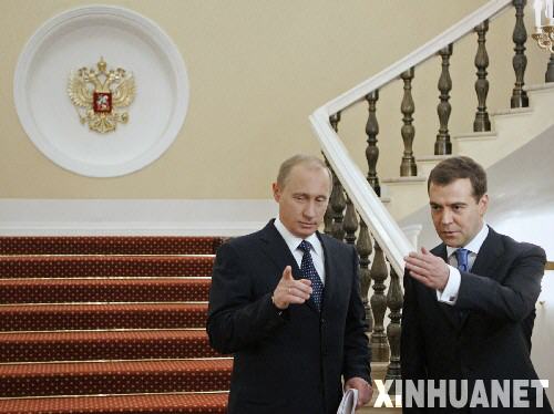 據(jù)俄媒體報道,統(tǒng)一俄羅斯黨、公正俄羅斯黨、俄羅斯農(nóng)業(yè)黨和公民力量黨4黨聯(lián)合提名第一副總理梅德韋杰夫為下屆總統(tǒng)候選人。普京12月10日在會見4黨領(lǐng)導(dǎo)人時對這一建議表示“完全贊同”。這是2006年6月8日在俄羅斯首都莫斯科拍攝的普京(左)與梅德韋杰夫的資料照片。 新華社發(fā)