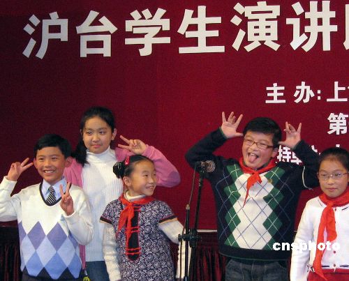 今天,滬上臺灣娃使出“十八般功夫”,展示自己的才藝,妙語連珠話說各自的世博會情結(jié)!拔以敢猱斠幻虾J啦⿻≈驹刚摺薄ⅰ拔蚁胙埶信_灣的親戚朋友,三年后來上海世博園!辈簧俚桥_的選手真切地表述了自己的心愿,甚至還有臺灣孩子“兄弟檔”同臺大展“脫口秀”技巧。