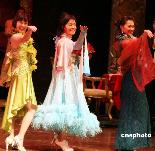 一月三日晚,大陸知名影視演員劉曉慶(中)在臺北國父紀念館彩排舞臺劇《金大班的最后一夜》,由她領銜主演的《金大班的最后一夜》四日起將在臺北公演六場。這是該劇在上海、北京、南京及新加坡等地巡演數十場并廣受好評后,首次來臺灣演出。 中新社發(fā) 孫自法 攝