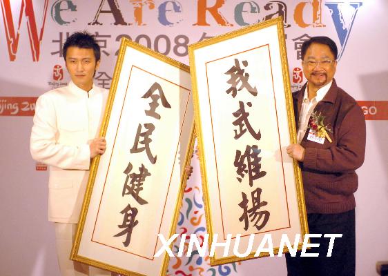資料圖片:1月14日,中國香港藝人、“全民健身之星”謝霆鋒(左)與徐小明在新聞發(fā)布會上展示武術(shù)牌匾。當(dāng)日,香港舉行迎奧運(yùn)倒計(jì)時200天“全民健身迎奧運(yùn)”新聞發(fā)布會,公布香港將在1月21日舉辦迎奧運(yùn)倒計(jì)時200天慶典活動。新華社記者盧炳輝攝