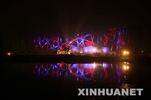 資料圖片:國家體育場(鳥巢)在五彩燈光的映照下璀璨亮麗。 新華社記者邢廣利攝