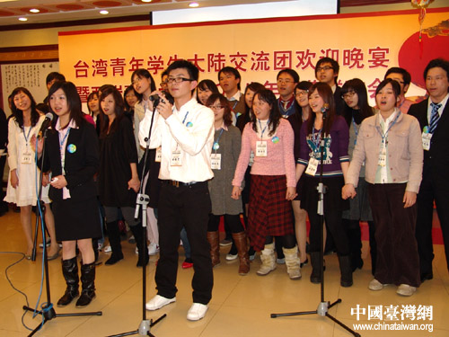 當(dāng)參加活動(dòng)的兩岸大學(xué)生共同演唱起原創(chuàng)歌曲《我們的心》時(shí),聯(lián)歡會(huì)達(dá)到了高潮。在歡聲雷動(dòng)的大堂里,兩岸青年用歌聲為大陸與臺(tái)灣的所有朋友送上了新春的祝福。