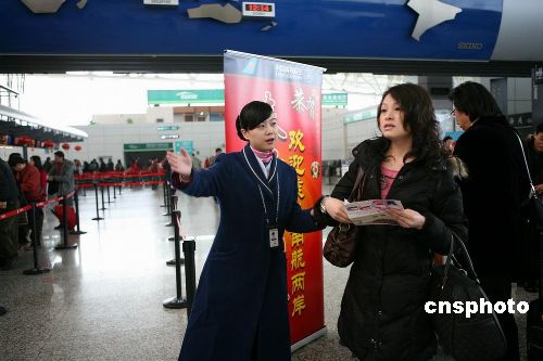 今年,東航采用安全舒適的A330系列飛機共執(zhí)行12個浦東—臺北的往返航班,共計24班航班,再次成為參與兩岸包機飛行最多的航空公司。東航包機機艙被對聯(lián)、年畫、中國結等裝扮一新,到處洋溢著過年的喜慶氣氛,還采取了“運力優(yōu)先、除冰優(yōu)先、疏導優(yōu)先”的保障措施,確保兩岸春節(jié)包機安全順利。