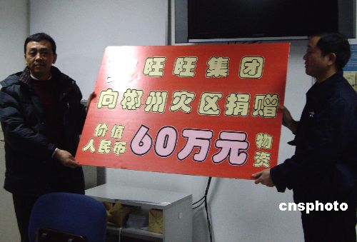 今年一月中旬以來,發(fā)生在大陸多個省份的嚴(yán)重雨雪冰凍災(zāi)害深深牽動著臺灣同胞的心。臺企旺旺集團在自身遭受了嚴(yán)重經(jīng)濟損失的情況下,緊急生產(chǎn)和調(diào)撥了價值四百一十五萬元人民幣的救災(zāi)物資運往各災(zāi)區(qū),其中一批價值六十萬元的食品、飲料安排給湖南受災(zāi)最為嚴(yán)重的郴州地區(qū)。