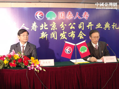 國泰人壽保險(xiǎn)有限責(zé)任公司北京分公司在京開業(yè),國泰人壽總經(jīng)理張發(fā)得,國泰人壽北京分公司總經(jīng)理歐陽紹熙主持開業(yè)典禮新聞發(fā)布會(huì)。(攝影:邵磌)
