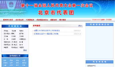 十一屆全國(guó)人大一次會(huì)議新聞中心網(wǎng)站的北京市代表團(tuán)主頁(來源:網(wǎng)站頁面截屏)