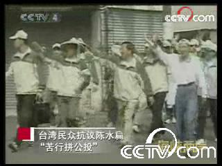 CCTV.com消息(海峽兩岸):據(jù)臺灣媒體報道,為了拼所謂的“公投苦行”,陳水扁10日早上8點,從臺南善化的肉品市場,展開近7公里的苦行行程,不過在行程過程中遭到民眾的抗議。