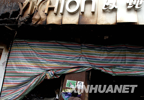 資料圖片:一名悼念者在遇難少女的照片前獻(xiàn)花(3月21日攝)。3月21日,位于拉薩市北京中路的“以純”服裝店門(mén)口,自發(fā)地來(lái)了很多各族群眾。他們?cè)趶U墟上擺放鮮花,點(diǎn)著蠟燭,默默地祈禱,祈禱在這里被奪去生命的5位花季女子的靈魂能夠安息。3月14日,不法分子放火焚燒了“以純”服裝店,次仁卓嘎、楊東梅、陳佳、何欣欣和劉燕等5名服務(wù)員未能從火海逃生。新華社記者 普布扎西 攝