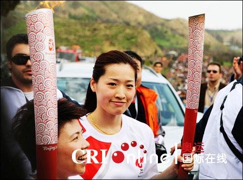 第二棒火炬手羅雪娟(攝影:國際在線記者 饒彬彬)