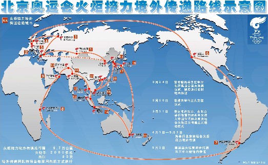 圖表:北京奧運會火炬接力境外傳遞路線示意圖 新華社發(fā)