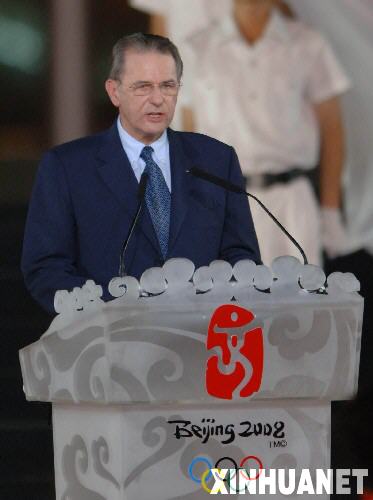 國(guó)際奧委會(huì)主席羅格多次強(qiáng)調(diào)反對(duì)將奧運(yùn)會(huì)與政治掛鉤。圖為2007年8月8日,國(guó)際奧委會(huì)主席羅格在活動(dòng)中致辭。當(dāng)晚,北京2008年奧運(yùn)會(huì)倒計(jì)時(shí)一周年慶;顒(dòng)在天安門(mén)廣場(chǎng)舉行。 新華社記者羅曉光攝