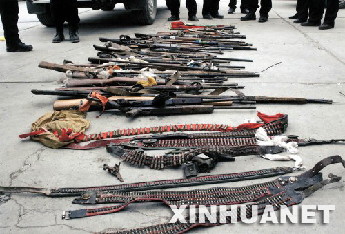 據(jù)介紹,3月28日,根據(jù)群眾舉報(bào),公安機(jī)關(guān)在格爾登寺查獲了一批武器彈藥,其中包括小口徑步槍16支、各種火藥槍14支、子彈498發(fā)、火藥4公斤、管制刀具33件,查獲了數(shù)以千計(jì)的“藏獨(dú)”宣傳品,以及短信群發(fā)器和淫穢錄像光碟等。