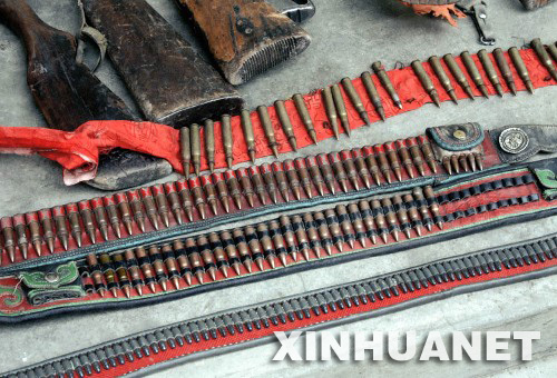 4月3日,國務(wù)院新聞辦舉行集體采訪,邀請四川省阿壩藏族羌族自治州人民政府副州長肖友才,就3月16日阿壩縣發(fā)生的一些不法分子在縣城進(jìn)行打砸搶燒的暴力犯罪事件回答中外記者提問。肖友才指出,不久前阿壩縣城發(fā)生的打砸搶燒事件,是達(dá)賴集團(tuán)精心策劃、有組織的暴力破壞活動(dòng)的重要組成部分。 這是根據(jù)群眾舉報(bào),公安機(jī)關(guān)在格爾登寺查獲的武器彈藥(3月28日攝)。 新華社發(fā)