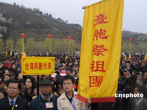須發(fā)斑白的臺(tái)灣中國(guó)統(tǒng)一聯(lián)盟前主席陳欽銘是第三次來(lái)黃帝陵,此番偕夫人同行。他笑稱,一九八九年第一次來(lái)陜西祭拜黃帝陵,留下的是頹敗荒涼的印象。如今,祭祖的盛況一年比一年好,中華民族偉大的始祖對(duì)海內(nèi)外華人起到了凝聚的作用。二00六年,原臺(tái)灣光復(fù)致敬團(tuán)后人謁黃帝陵一行由臺(tái)灣中國(guó)統(tǒng)一聯(lián)盟四處奔走,全力促成。滄桑一甲子、終于得夢(mèng)圓,充分證明了黃帝陵在人們心中的地位。