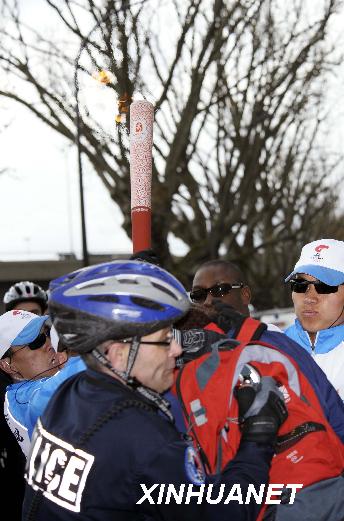 4月7日,北京奧運(yùn)圣火在巴黎傳遞時遭遇少數(shù)“藏獨(dú)”分子的干擾破壞。這是巴黎警察及時制止一名擾亂火炬?zhèn)鬟f者試圖從火炬手手中搶奪火炬。 新華社記者戚恒攝