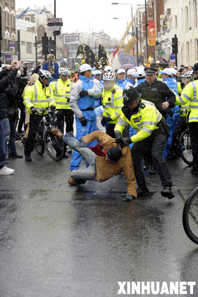 4月6日,英國倫敦警方逮捕了極少數(shù)企圖干擾破壞奧運圣火傳遞的“藏獨”分子。 新華社記者 戚恒 攝