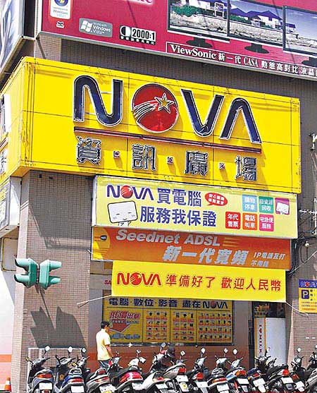 NOVA臺北站前店及臺中店都有掛出歡迎人民幣的布條。臺北站前店店長張師銘說,掛出廣告是想搶先機(jī),讓陸客知道只要臺當(dāng)局一開放,NOVA就會去申請兌換人民幣。