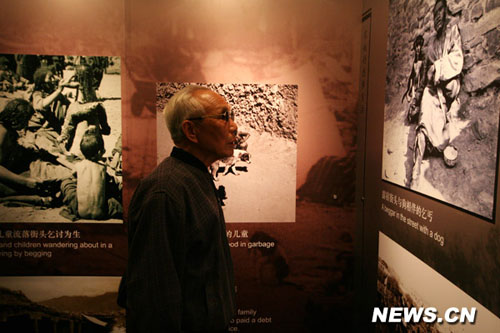一位老者在西藏歷史與封建農(nóng)奴制展區(qū)的舊西藏圖片前若有所思。 新華網(wǎng) 馬軼群 攝