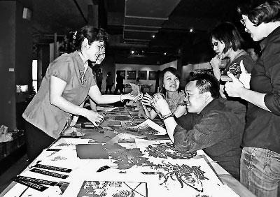 漳浦民間藝術家張崢嶸出身于剪紙世家,是福建省著名剪紙藝人黃素的外孫女。在福建民間美術展上,張崢嶸和浦城剪紙藝術家謝美貞的表演攤位總是吸引了眾多的觀眾。張崢嶸說此次她專門為展覽準備的140多張剪紙作品,不到兩天就只剩下了20多張勉強“撐門面”,其他都被參觀的臺灣鄉(xiāng)親取走。