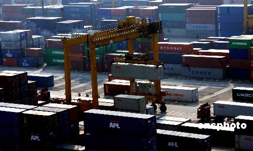 資料圖:3月24日,對臺試點直航口岸重要作業(yè)區(qū)福州港青州港區(qū)集裝箱碼頭呈現(xiàn)繁忙景象。福州港作為原國家交通部批準(zhǔn)的兩個對臺試點直航口岸之一,自1997年4月19日福建省外貿(mào)船務(wù)公司的“華榮”號裝載37個標(biāo)箱駛向臺灣高雄,首次實現(xiàn)兩岸試點直航以來,截至2008年2月,對臺試點直航船舶已順利往返共計8210個航次,累計運載集裝箱214萬多標(biāo)箱。 中新社發(fā) 劉可耕 攝
