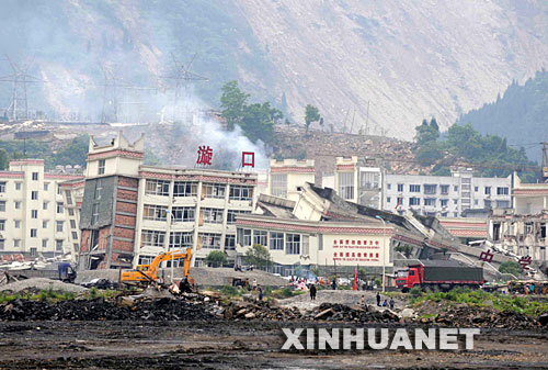 這是遭到嚴(yán)重破壞的汶川縣映秀鎮(zhèn)漩口中學(xué)樓房(5月14日攝)。 新華社記者陳樹根攝
