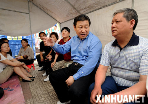 新華網(wǎng)西安5月20日電 中共中央政治局常委、中央書記處書記、國家副主席習(xí)近平在陜西省委書記趙樂際、省長袁純清等陪同下,今天繼續(xù)在陜西地震災(zāi)區(qū)察看災(zāi)情,慰問干部群眾,指導(dǎo)抗震救災(zāi)工作。他強(qiáng)調(diào),各級(jí)領(lǐng)導(dǎo)干部要始終堅(jiān)持以人為本,切實(shí)把群眾利益放在第一位,滿腔熱情地幫助受災(zāi)群眾排憂解難,妥善安排好他們的生產(chǎn)生活。