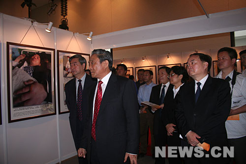 圖為全國人大常委會(huì)原副委員長熱地(左三)、教育部部長周濟(jì)(左四)、新華社社長李從軍(左二)共同為圖片展揭幕。新華社記者 溫桂旭 攝