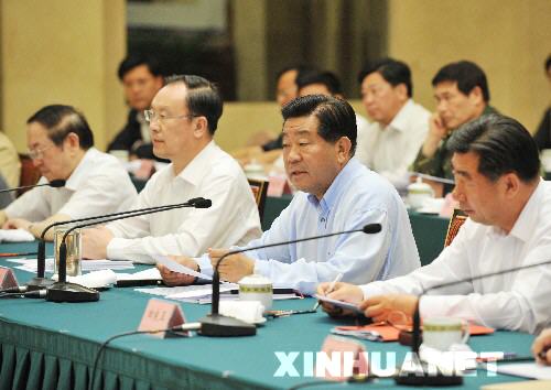 5月30日,中共中央政治局常委、全國(guó)政協(xié)主席賈慶林代表中共中央和胡錦濤總書記在成都主持召開各民主黨派、工商聯(lián)抗震救災(zāi)座談會(huì)。 新華社記者 樊如鈞 攝