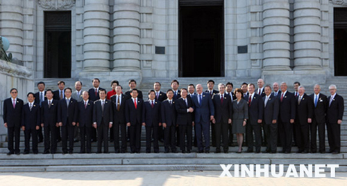 6月18日,第四次中美戰(zhàn)略經(jīng)濟對話在美國安納波利斯閉幕。這是出席第四次中美戰(zhàn)略經(jīng)濟對話的中美雙方代表在閉幕會前合影。 新華社記者 姚大偉 攝