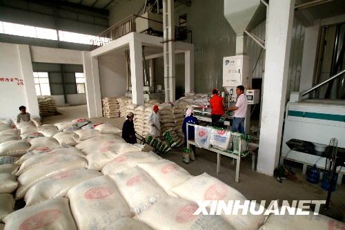 5月23日,安徽省懷遠(yuǎn)縣一糧油公司的員工加班加點(diǎn)將大米裝袋。由這家公司捐贈(zèng)的60噸大米經(jīng)質(zhì)檢合格后將運(yùn)往四川地震災(zāi)區(qū)。 新華社發(fā)(葉勝利 攝)