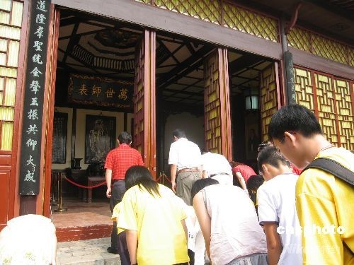 7月17日,千年學(xué)府岳麓書(shū)院內(nèi)文廟前,來(lái)自海峽兩岸的四十多位家長(zhǎng)、孩子共同向至賢先師孔子像行鞠躬禮。據(jù)悉,這些家庭都是“親子讀經(jīng)班”的成員,為學(xué)習(xí)和傳統(tǒng)中華傳統(tǒng)文化,家長(zhǎng)利用業(yè)余時(shí)間帶著孩子一起誦讀古文經(jīng)典,促進(jìn)溝通。 中新社發(fā) 劉雙雙 攝
