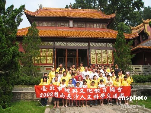 7月17日,來(lái)自臺(tái)灣“親子讀經(jīng)班”的人文科學(xué)交流團(tuán)與大陸家庭一同在岳麓書(shū)院文廟前合影。據(jù)悉,家長(zhǎng)和孩子一起誦讀古文經(jīng)典在臺(tái)灣已經(jīng)蔚然成風(fēng),推廣該教育模式的臺(tái)北市經(jīng)典文化教育協(xié)會(huì)決定在大陸復(fù)制,并選擇長(zhǎng)沙作為首個(gè)示范地推廣。 中新社發(fā) 劉雙雙 攝