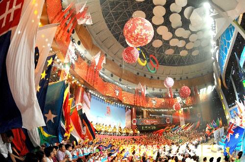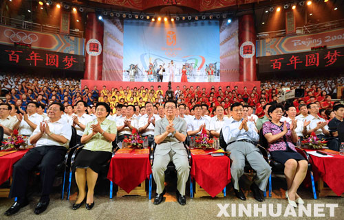《百年圓夢——迎2008北京奧運會文藝晚會》在北京舉行 7月29日,《百年圓夢——迎2008北京奧運會文藝晚會》在北京舉行。 新華社記者 馬占成 攝