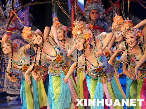 7月29日,演員在表演舞蹈。當(dāng)日,《百年圓夢——迎2008北京奧運會文藝晚會》在北京舉行。 新華社記者 馬占成 攝